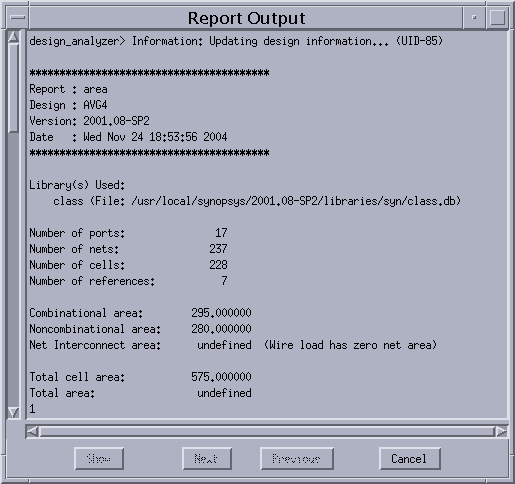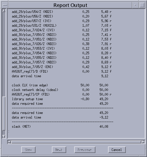 7) クロックの周期のターゲット値を1として、再合成する。(なるべく、最小サイクル時間の小さい回路を合成せよ)