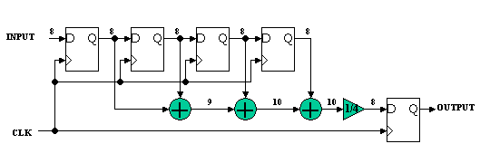 REGISTER process(CLK) begin if (CLK'event and CLK='1') then AVGOUT <= SUM(9 downto 2); end if; end process; end RTL; |