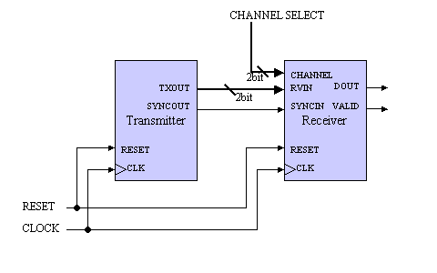 また、通常は送信側と受信側には同一クロック信号は用いることはできず、受信側でクロック再生(Clock Recovery)をする必要がありますが、今回は同期の取れたクロックが与えられたこととします。