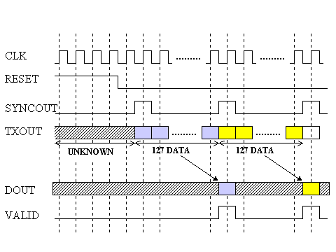 この結果、127サイクルごとにRECEIVERはDOUTに受信データを出力し、VALIDに’1’を出力します。
