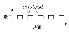 クロックの周期が 10ns (10ナノ時間) であれば、クロック周波数はその逆数であり、100MHzとなる。