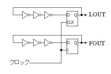 1) 以下の回路の出力端LOUTとFOUTの動作波形を示せ。