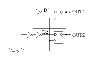 クロックの周期を10nsとすると、OUT1とOUT2の周期はいくらか?