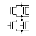 4)「5.CMOS基本論理ゲート回路の特徴」 の「宿題2」に示したNMOSネットワークに対応するPMOSネットワークの回路図を示せ。