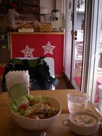 (お食事) トリ玉ボゥル@SoupOn’ Jan 22, 2009 お食事 日記 Share on: SoupOn’ http://soup-on.com/ メインプレイスの近くにある(米粉80%な)ベーグル&スープ屋さん。 だったのが、最近になってご飯ものも出すようになりました。 積極的に県参品を使ってるらしく、認定されていたはず。(うろ覚え) 写真は照り焼き風味の「トリ玉ボゥル」。 鶏肉の下にはアボガド山葵が隠れていて、これもまたウマい! Tags: グルメ, スープ, 丼ぶり, 新都心, 那覇市